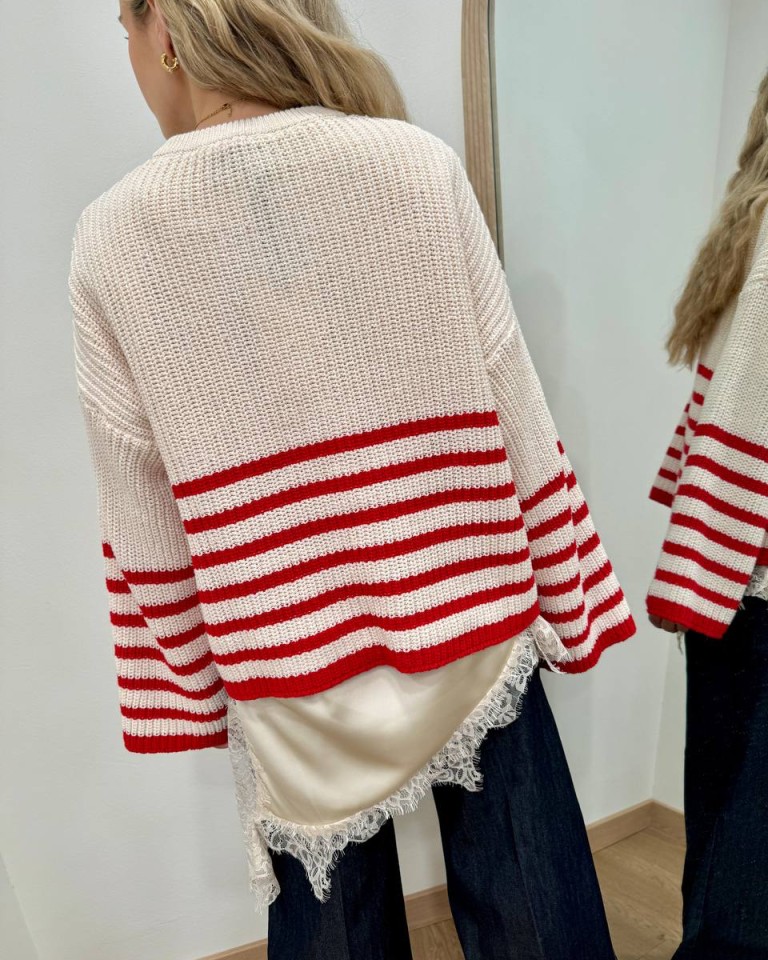 Maglione scatoletta righe panna rosso HaveOne