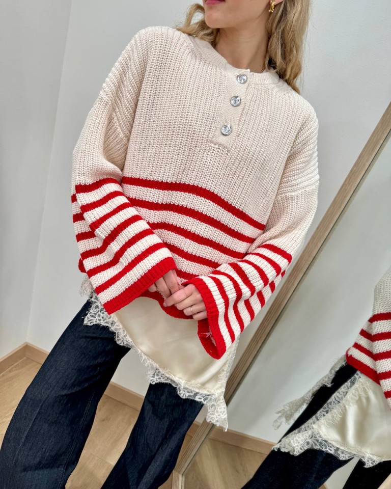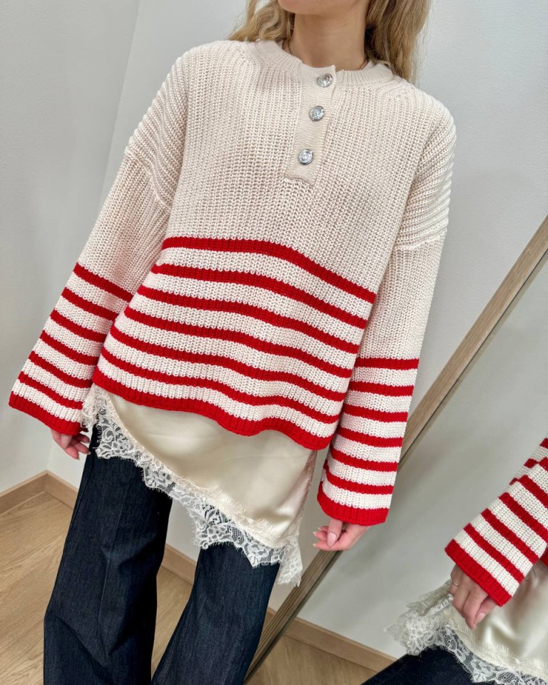 Maglione bottoni righe panna rosso HaveOne