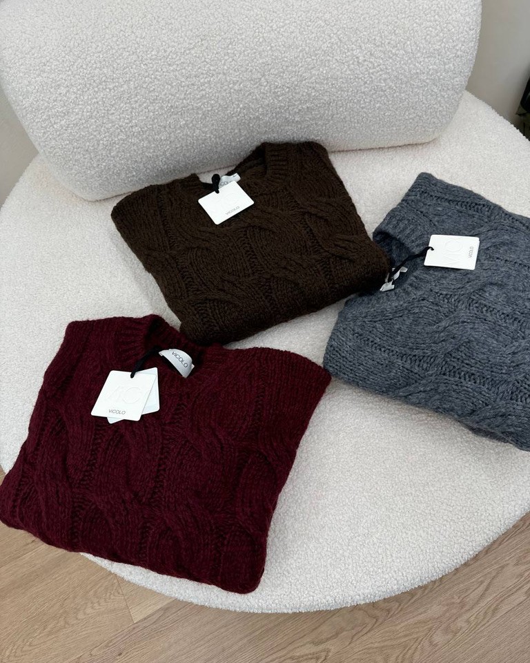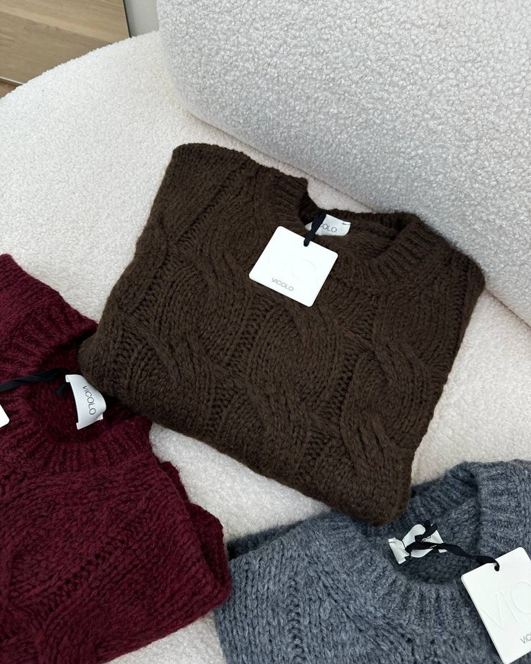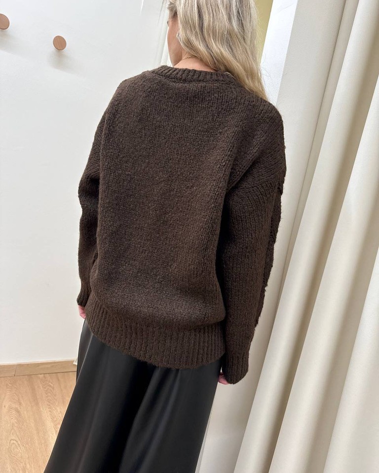 Maglione girocollo trecce moro Vicolo
