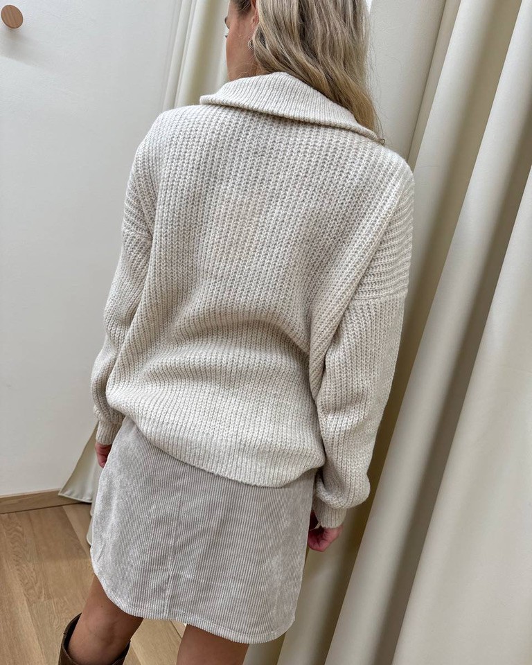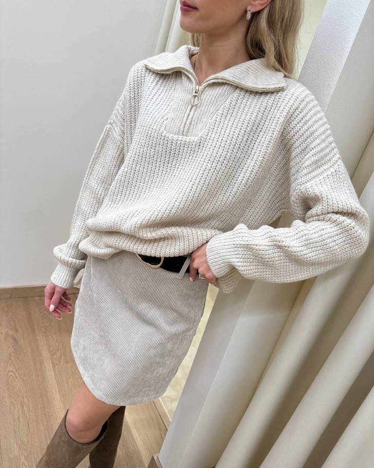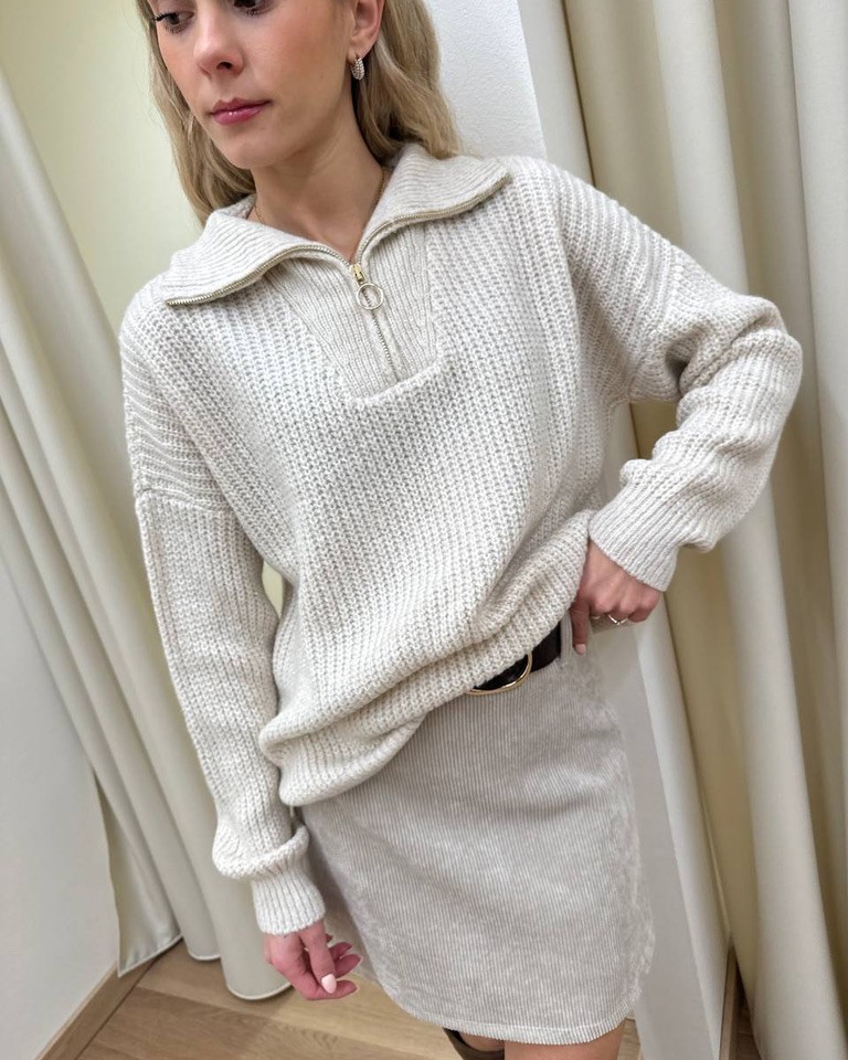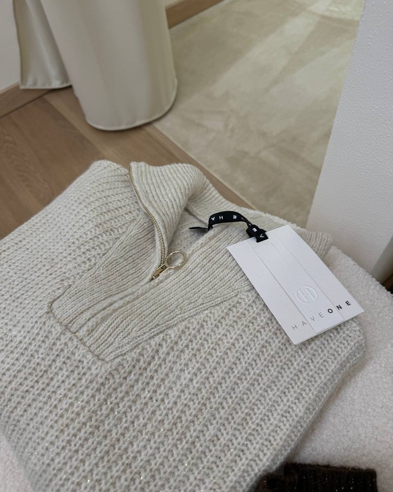 Maglione oversize collo alto con zip e lurex panna HaveOne