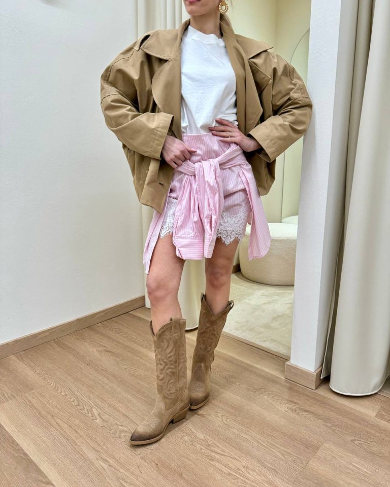 Minigonna maniche camicia rosa HaveOne