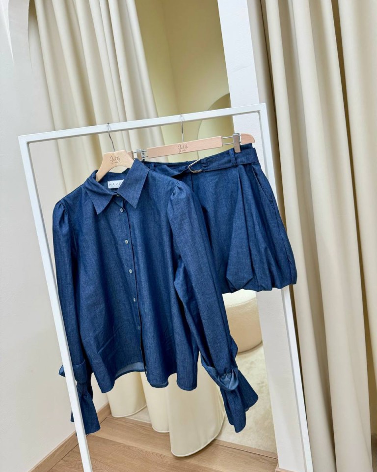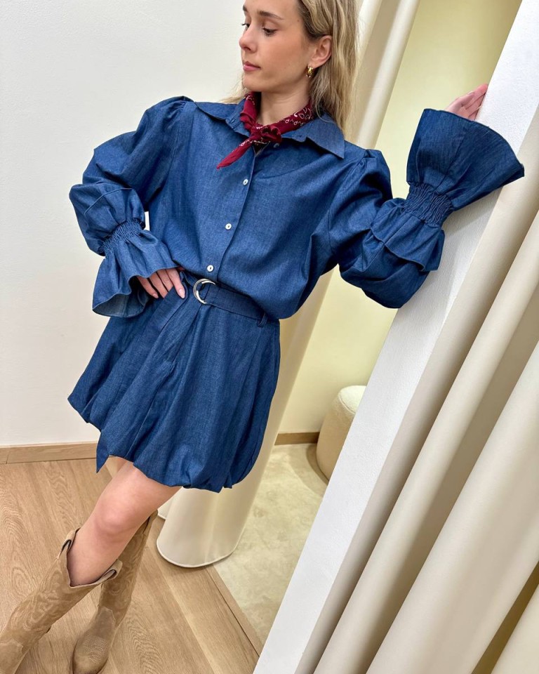 Camicia maniche a sbuffo denim blu HaveOne