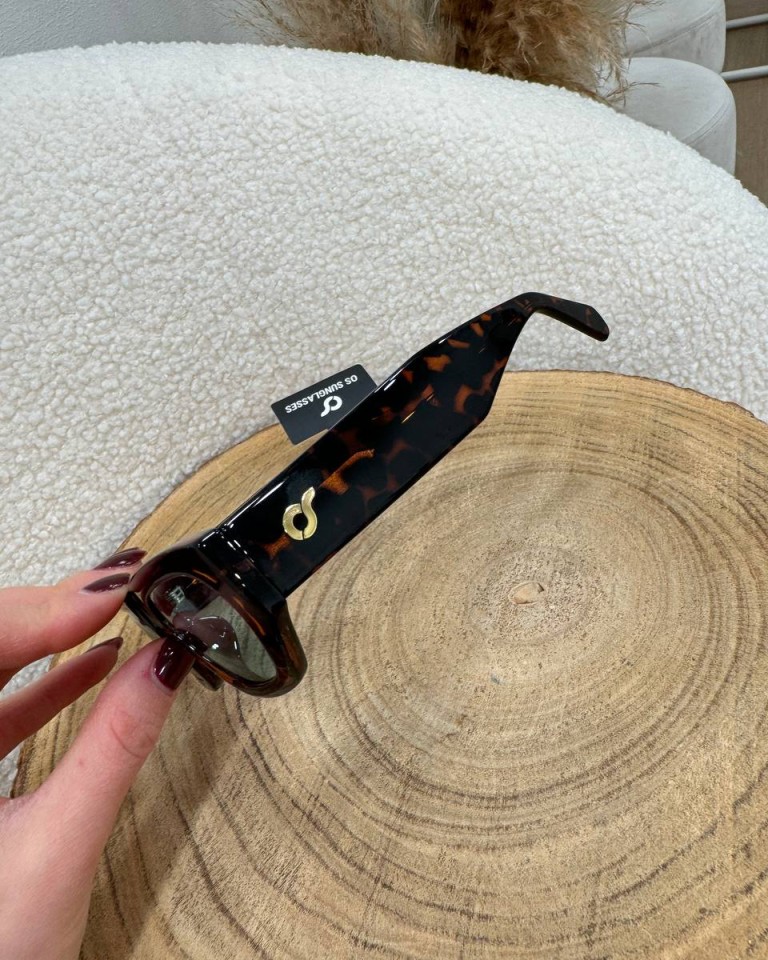 Occhiale da sole Kyoto lente turchese e montatura in acetato tartarugato, modello geometrico. In dotazione custodia morbida e rigida e panno per la pulizia.