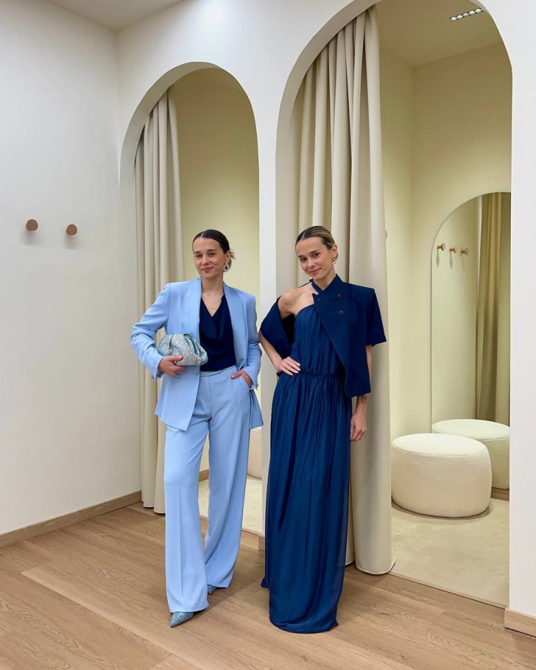 Un abito lungo in blu profondo, fluido e scenografico. Il design monospalla crea un effetto asimmetrico molto elegante, mentre il tessuto leggero cade morbido enfatizzando il movimento. Il dettaglio della giacca corta strutturata aggiunge carattere e un tocco quasi architettonico al look. La silhouette è femminile e slanciata, ideale per una cerimonia serale o un evento formale. Minimal negli accessori, punta tutto sulla forza del colore e sulla linea distintiva dell’abito