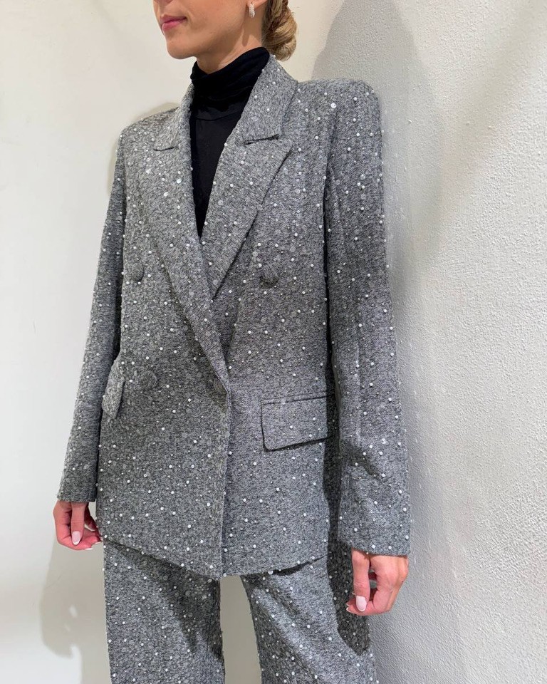 Blazer doppiopetto grigio con paillettes e perle Vicolo