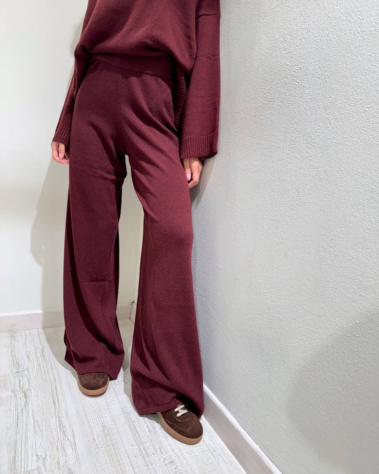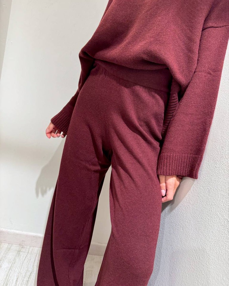 Pantalone bordeaux in maglia misto cachemire Kontatto