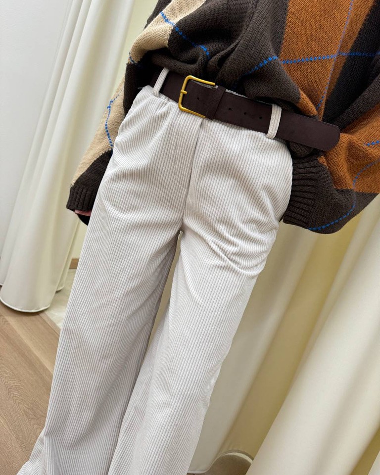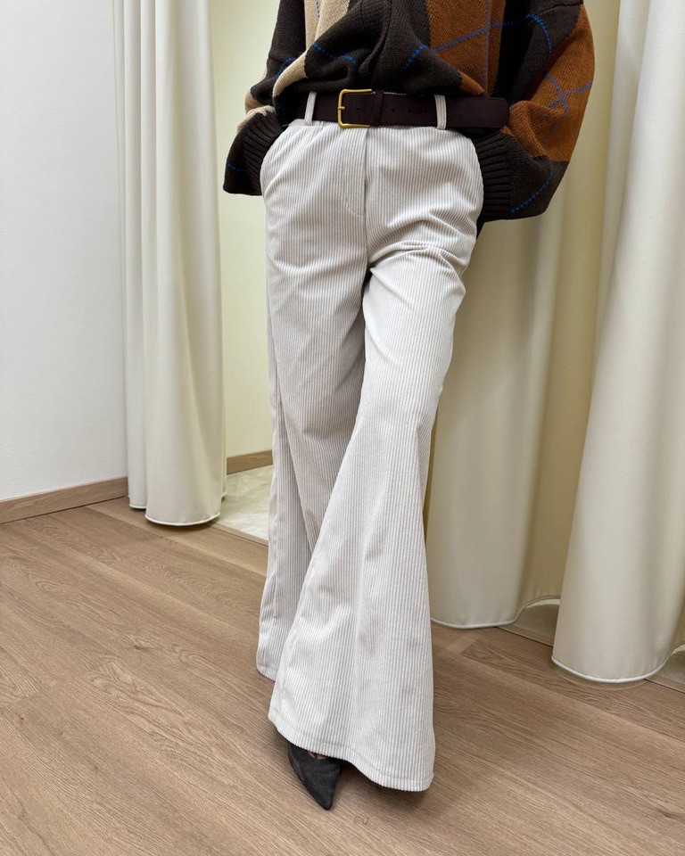 Pantalone dritto in velluto rocciatore burro con cintura HaveOne