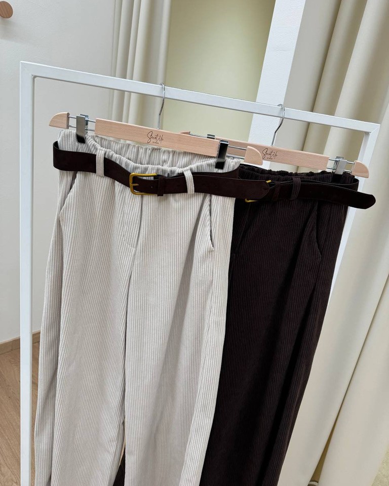 Pantalone dritto in velluto rocciatore moro con cintura HaveOne