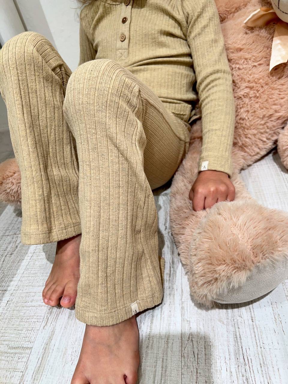 Pantalone in maglia sabbia a zampa Lil’ Atelier