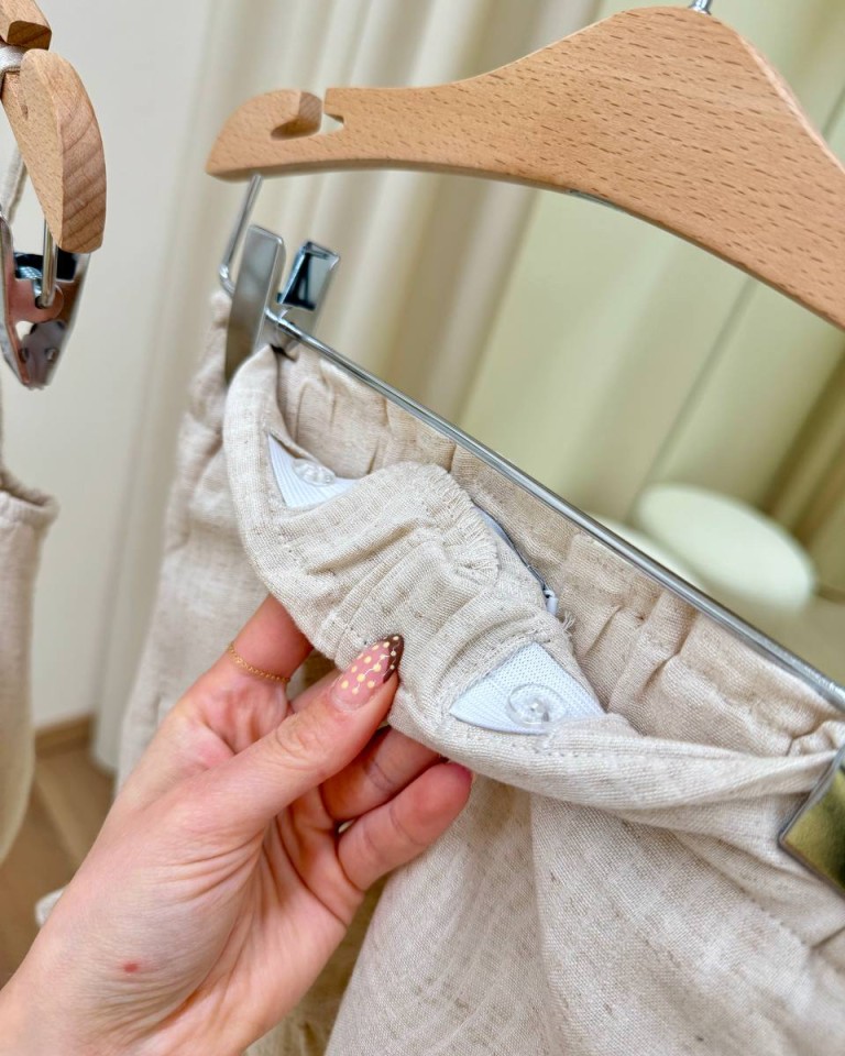 Short beige in cotone, lino e viscosa. Modello corto con rouches sul fondo, tasche al fianco e vita alta con elastico regolabile. Vestibilità regolare.