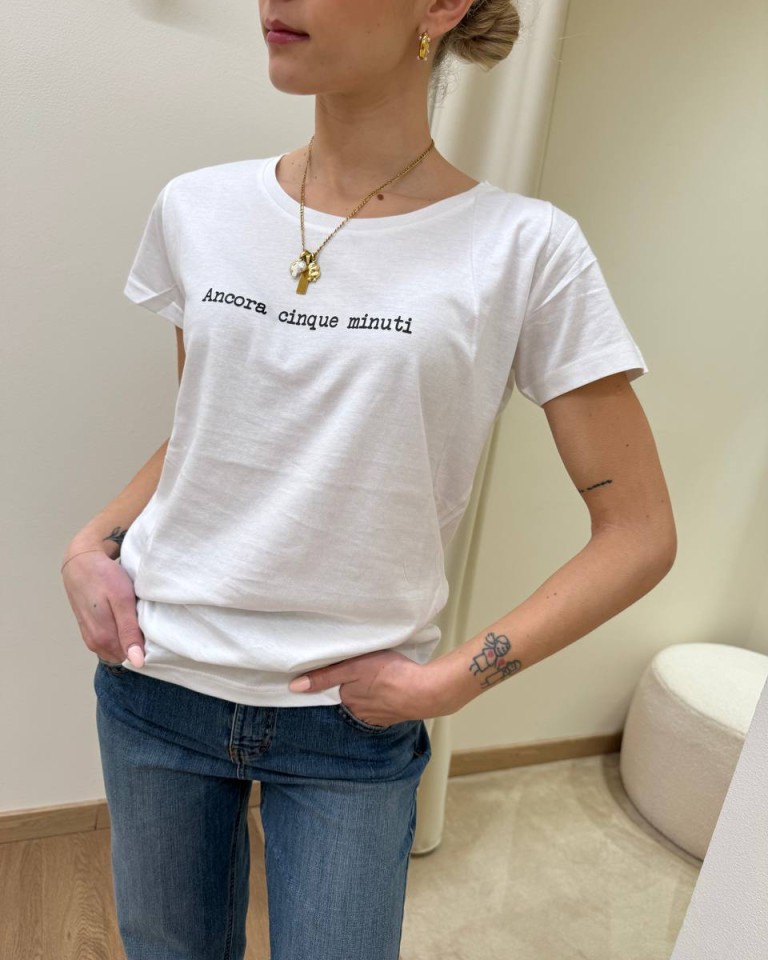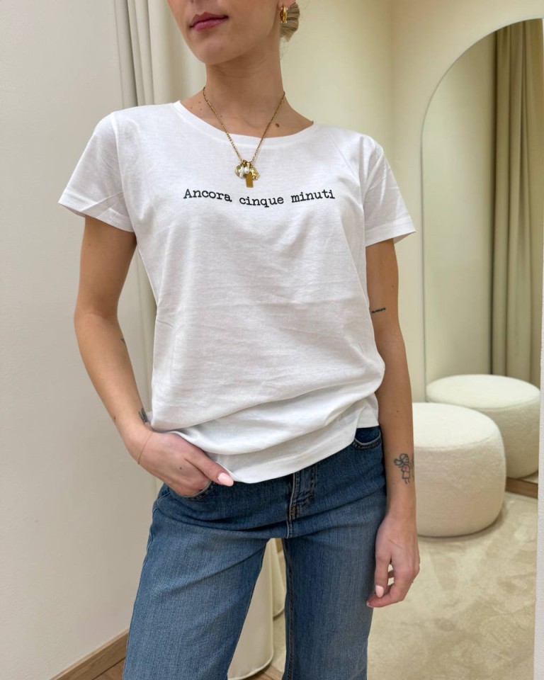T-shirt bianca “Ancora cinque minuti” Susy Mix