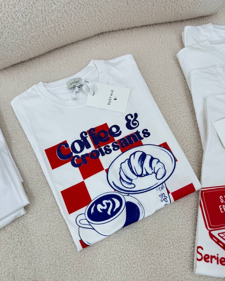 T-shirt bianca “Coffee & Croissant” Susy Mix
