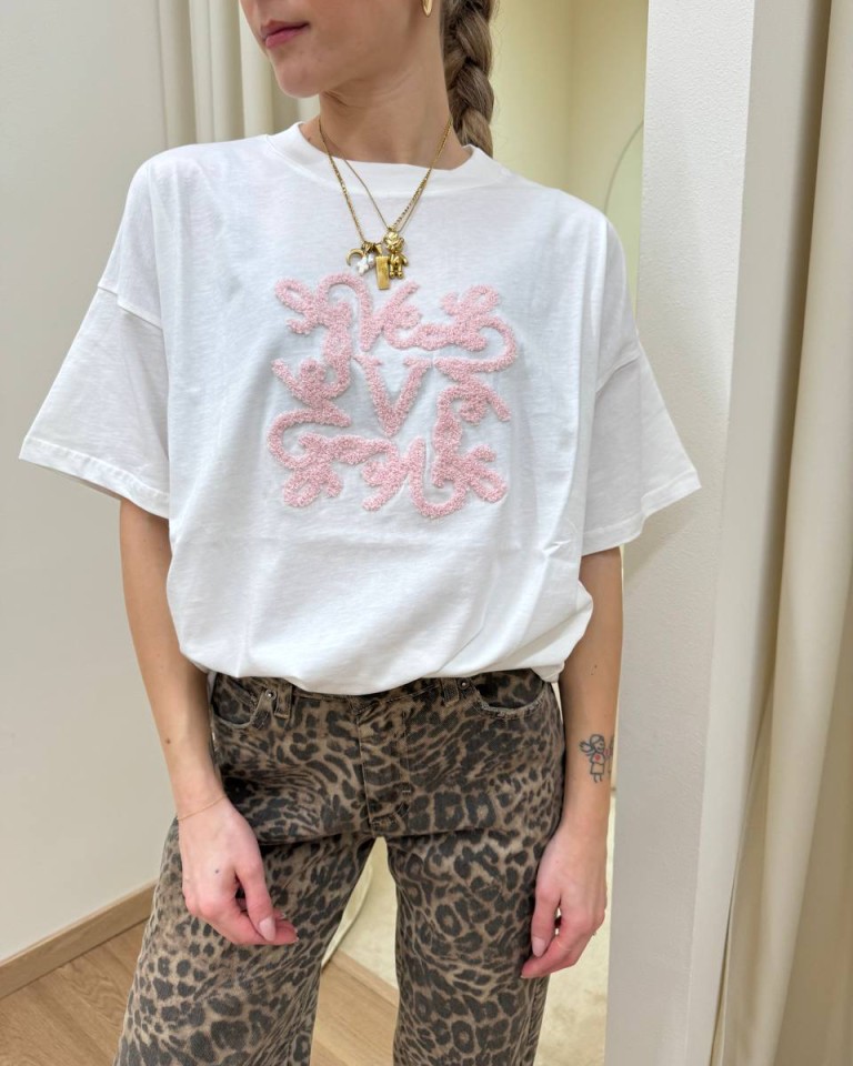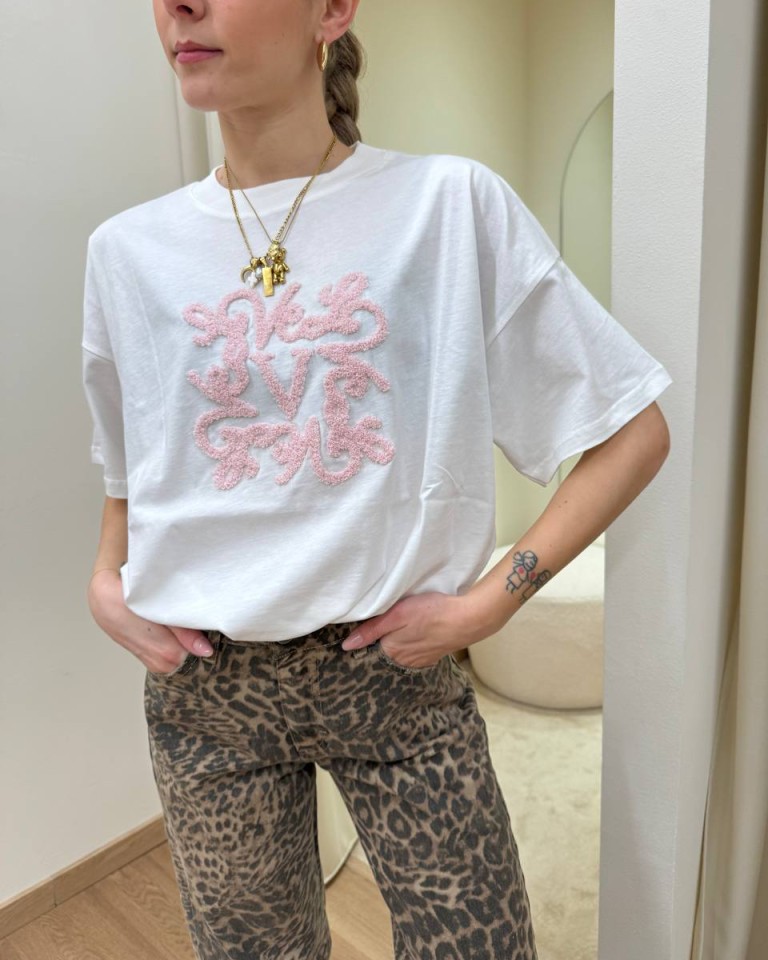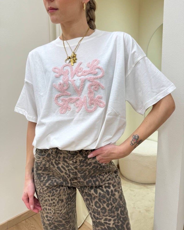 T-shirt bianca ricamo monogram rosa Vicolo