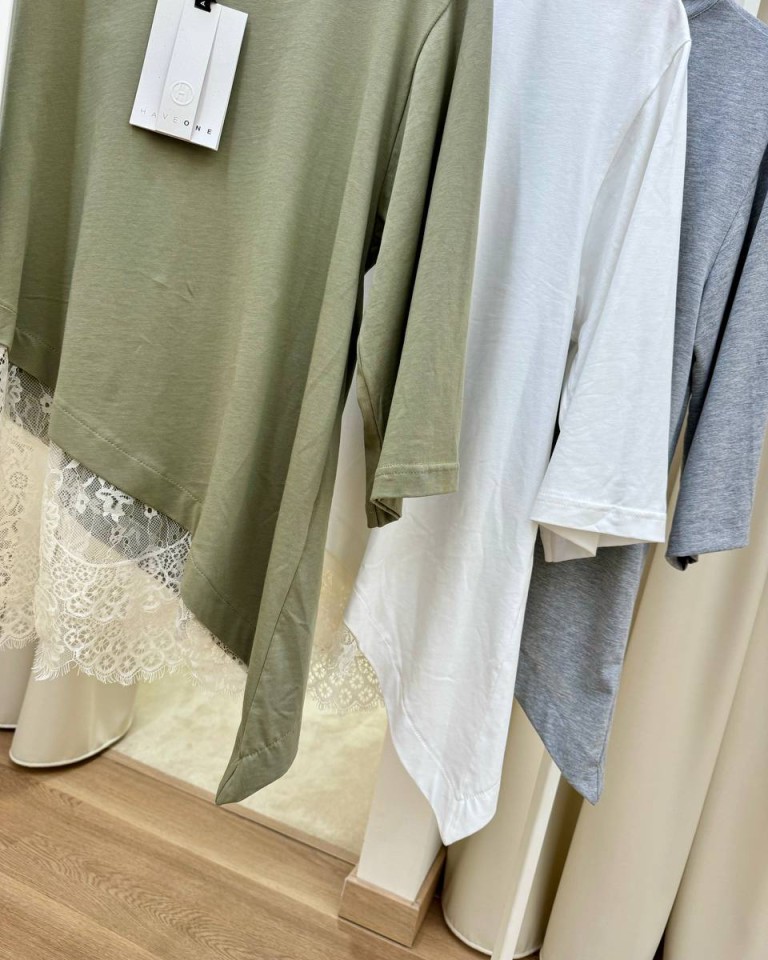 T-shirt over verde salvia inserto pizzo HaveOne