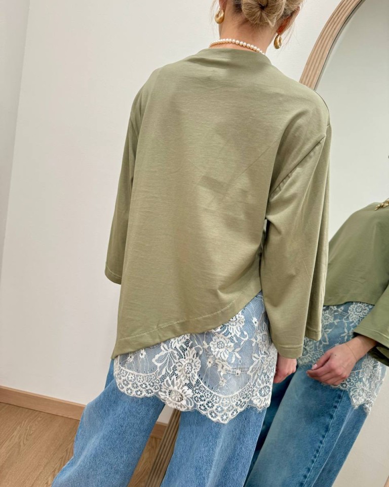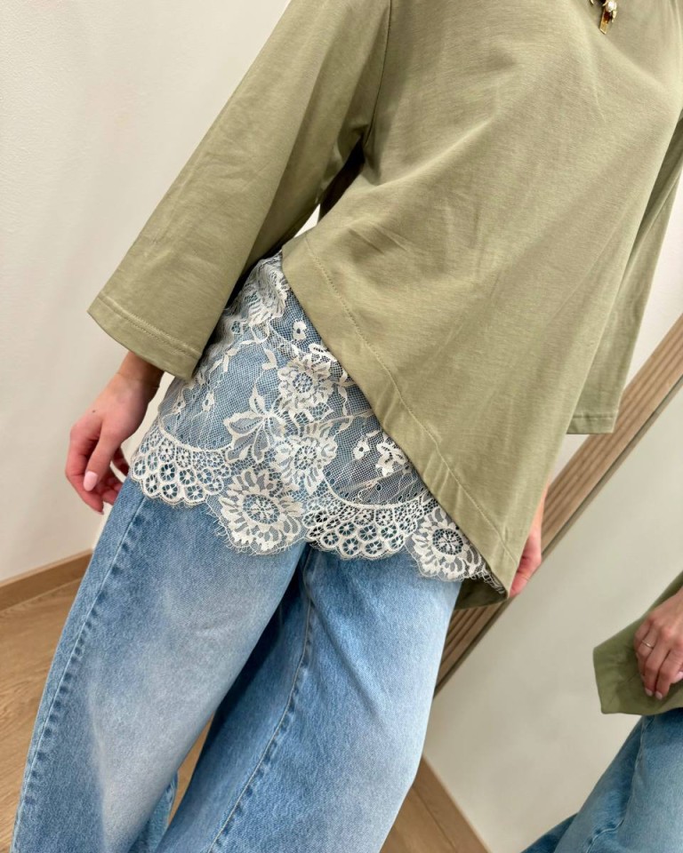 T-shirt over verde salvia inserto pizzo HaveOne