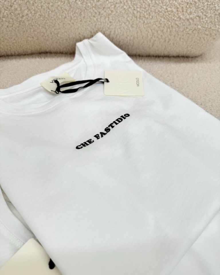 T-shirt regular bianca ricamo “Che Fastidio” Vicolo