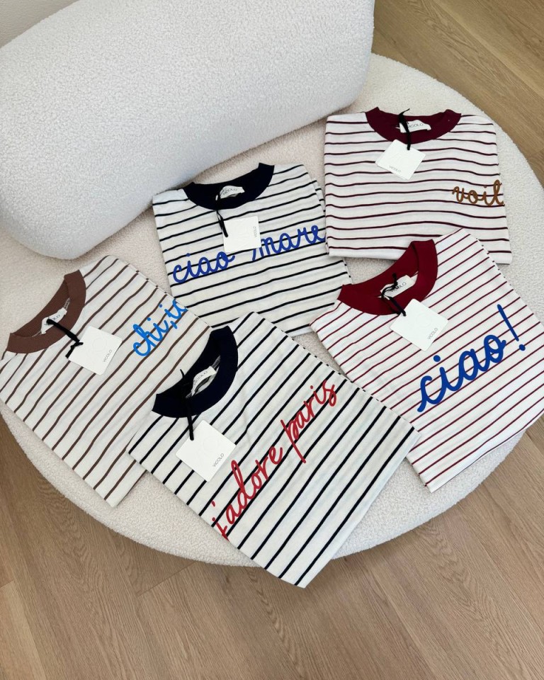 T-shirt righe blu scuro scritta “j’adore paris” Vicolo