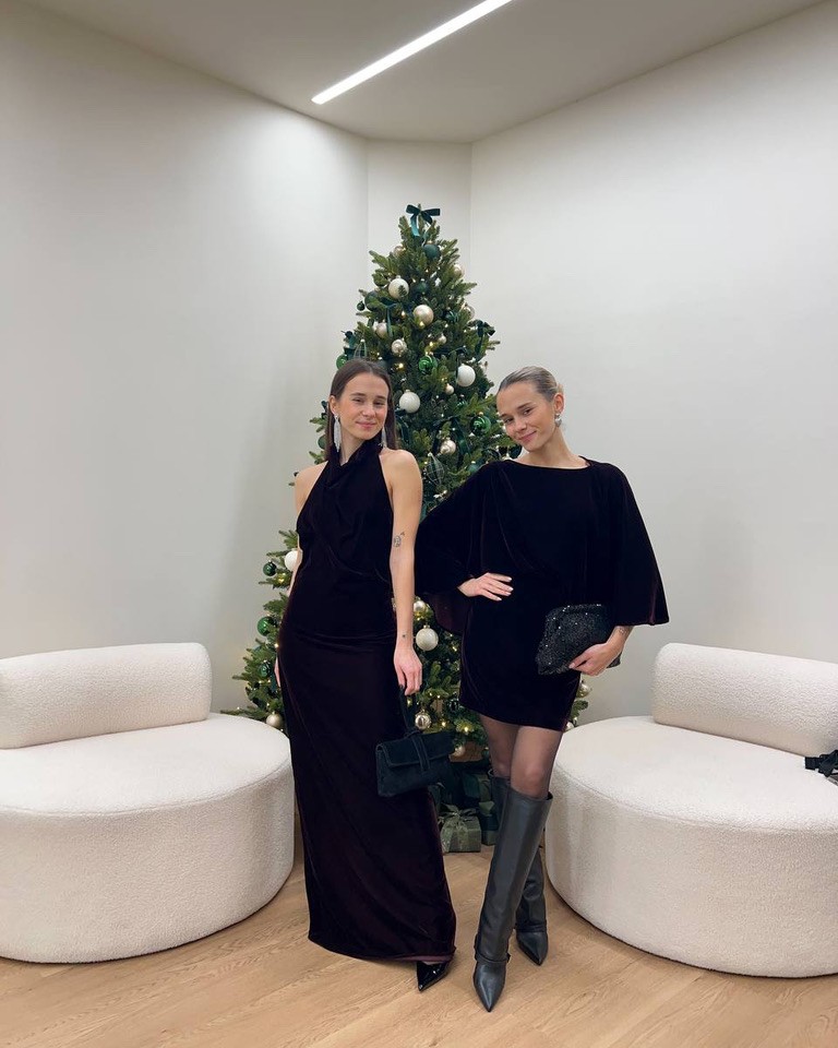 Il velluto è da sempre uno dei protagonisti durante le festività, sobrio, elegante e capace di soddisfare ogni personalità. Per chi desidera un look raffinato questo abito lungo in velluto bordeaux è perfetto, audace e femminile con la sua scollatura profonda sulla schiena, abbinato ad accessori come decolletè nere e orecchini ricoperti di strass risulterà adatto a cene e feste chic. Per chi vuole un look meno impegnativo l’abito in velluto ma in versione corta è l’ideale, semplice ma contemporaneo grazie alle sue maniche a pipistrello. La pochette in paillettes dona un tocco luminoso mentre gli stivali alti in pelle danno grinta all’outfit.