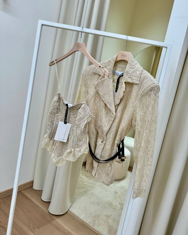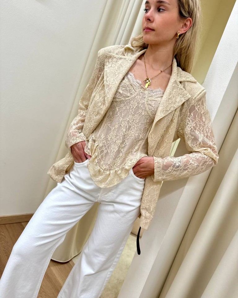 Giacca pizzo beige cintura doppia HaveOne