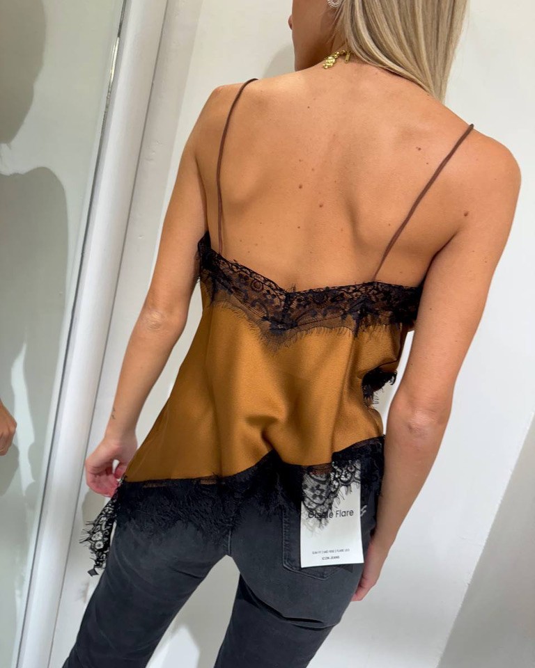 Top satin tabacco con pizzo Susy Mix