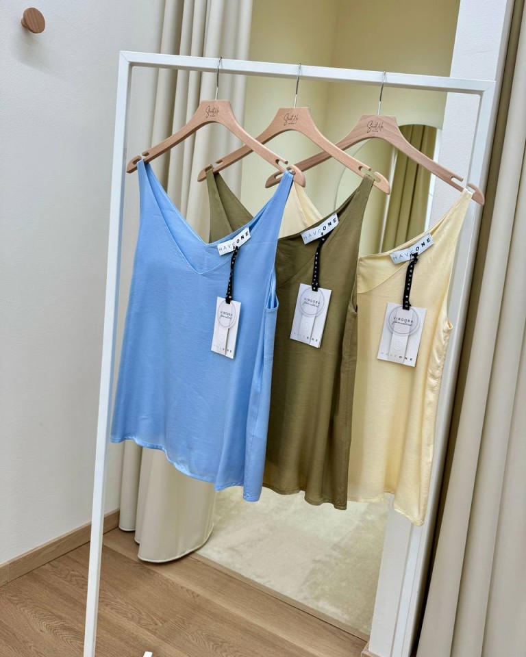 Top scollo a V viscosa celeste HaveOne