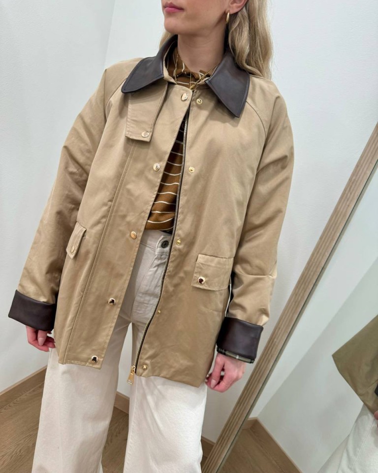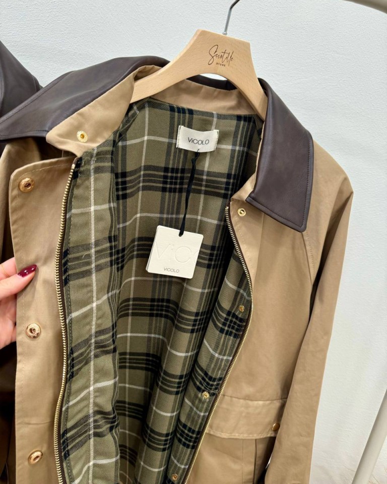 Trench corto cammello collo velluto HaveOne
