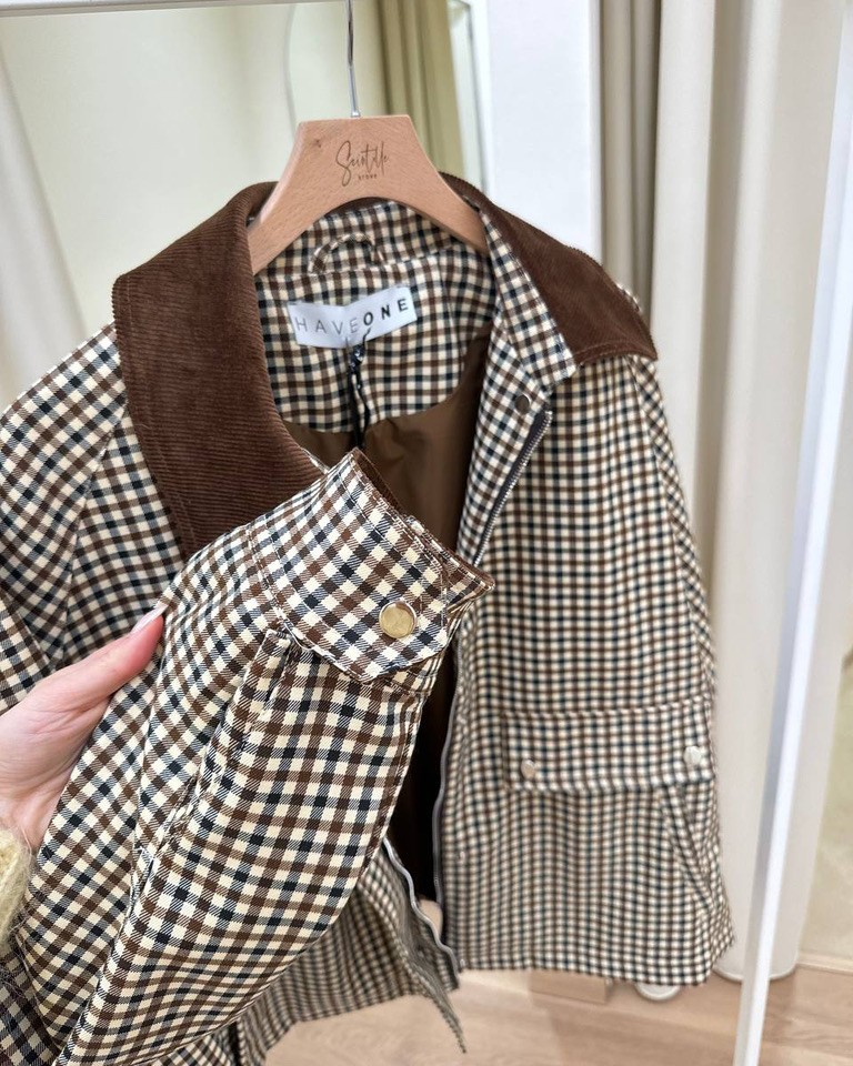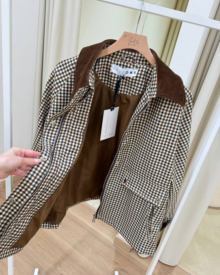 Trench corto quadretti moro collo velluto HaveOne
