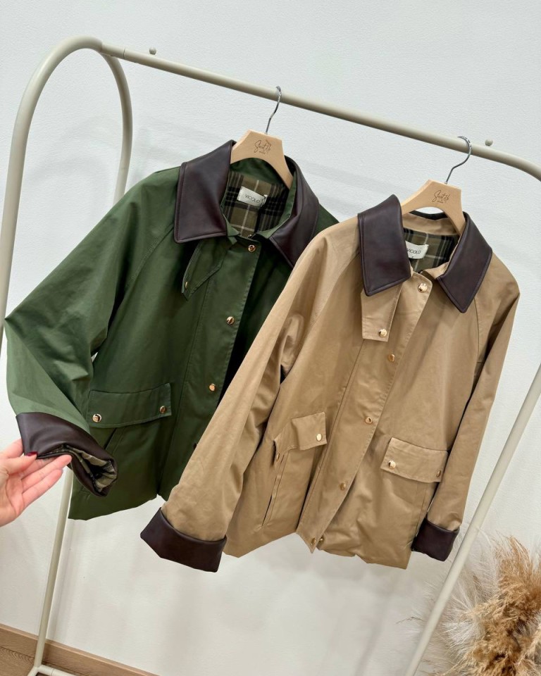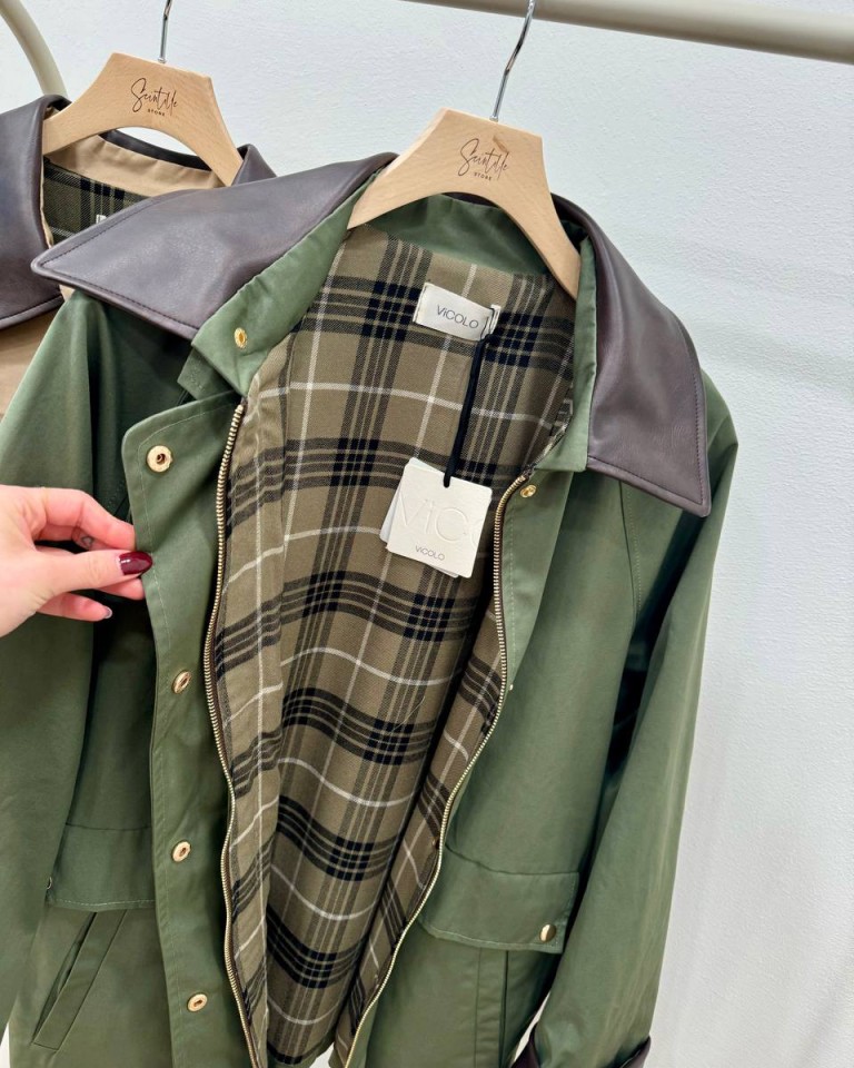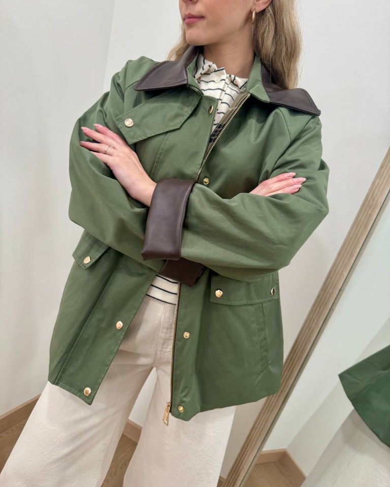 Trench corto verde militare collo velluto HaveOne