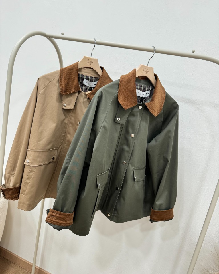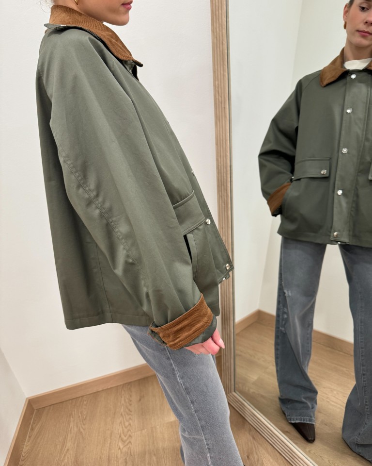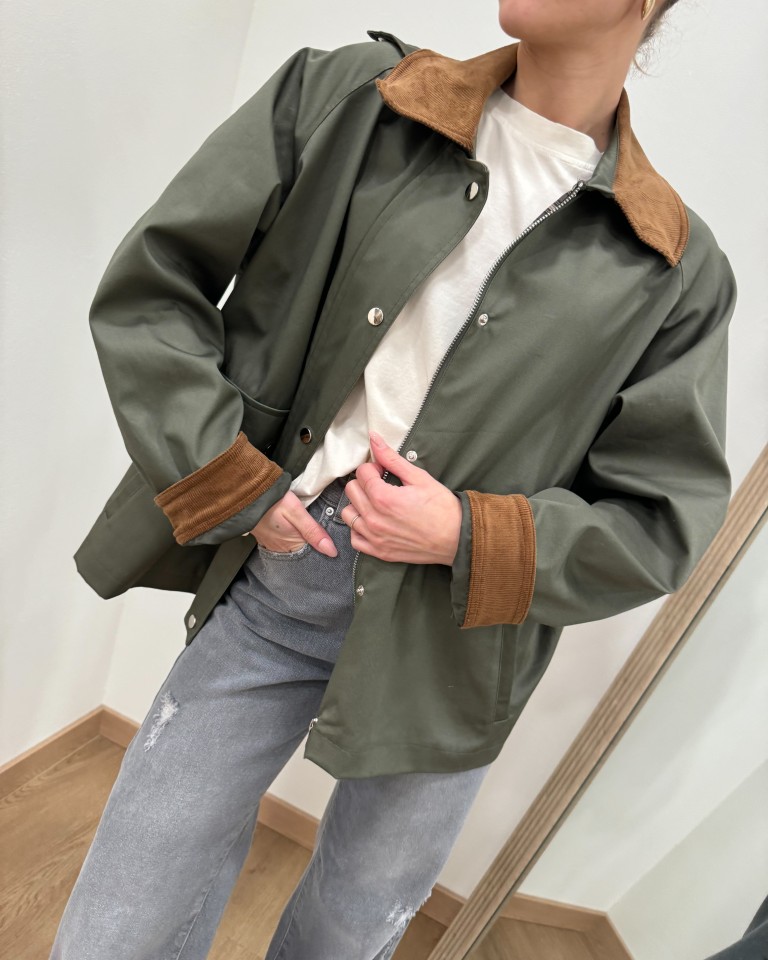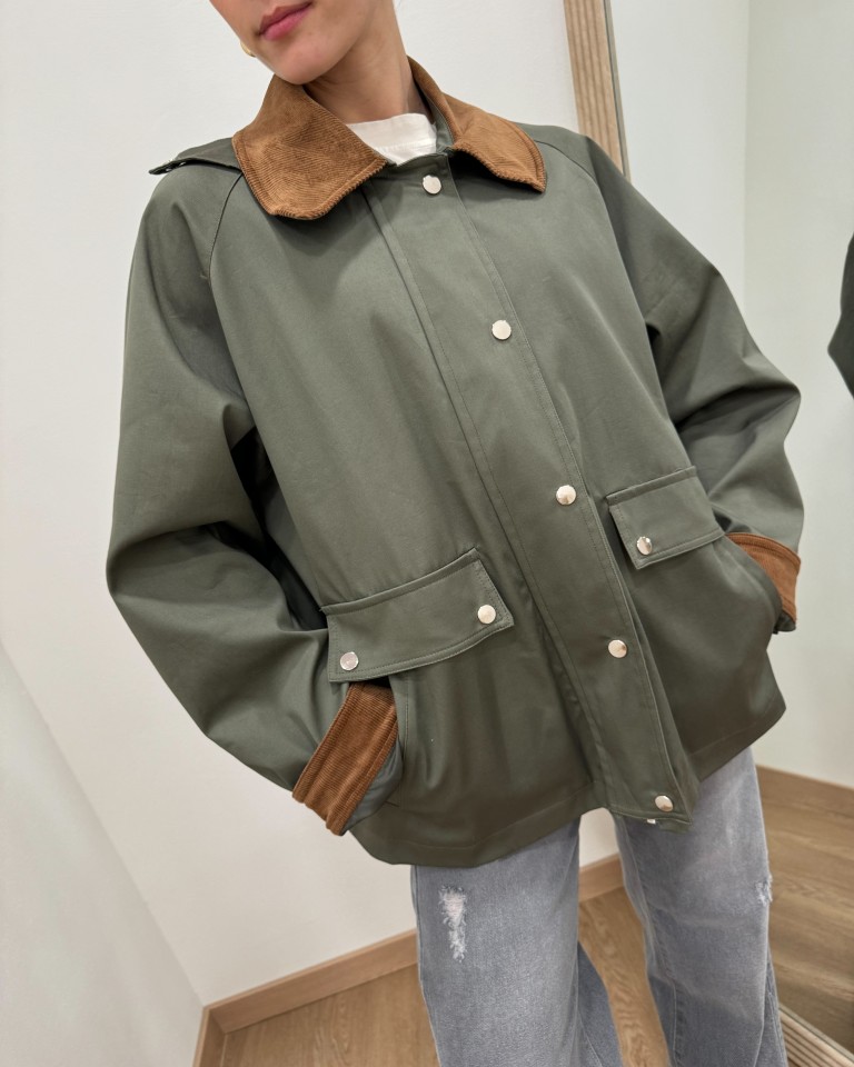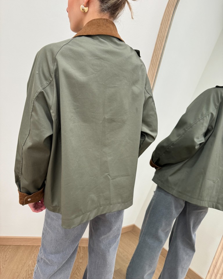 Trench corto verde militare collo velluto HaveOne
