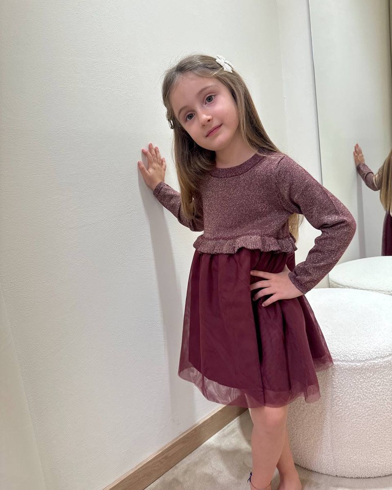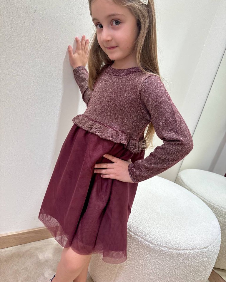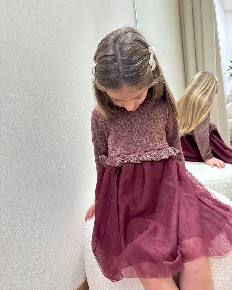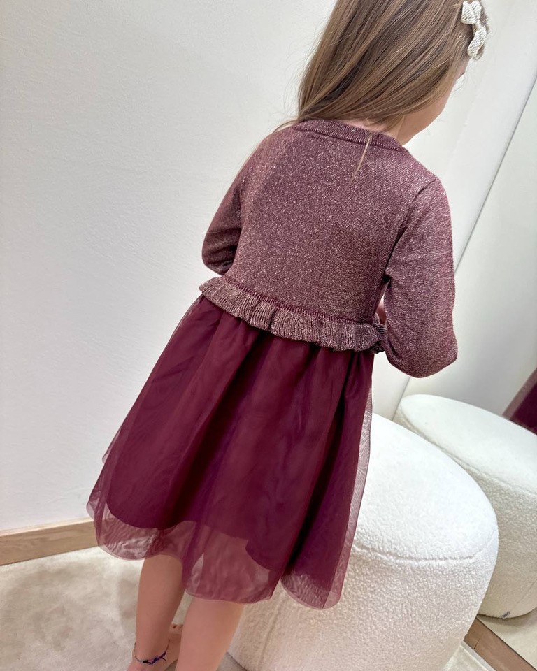 Vestito bordeaux in tulle con maglia in lurex Name It