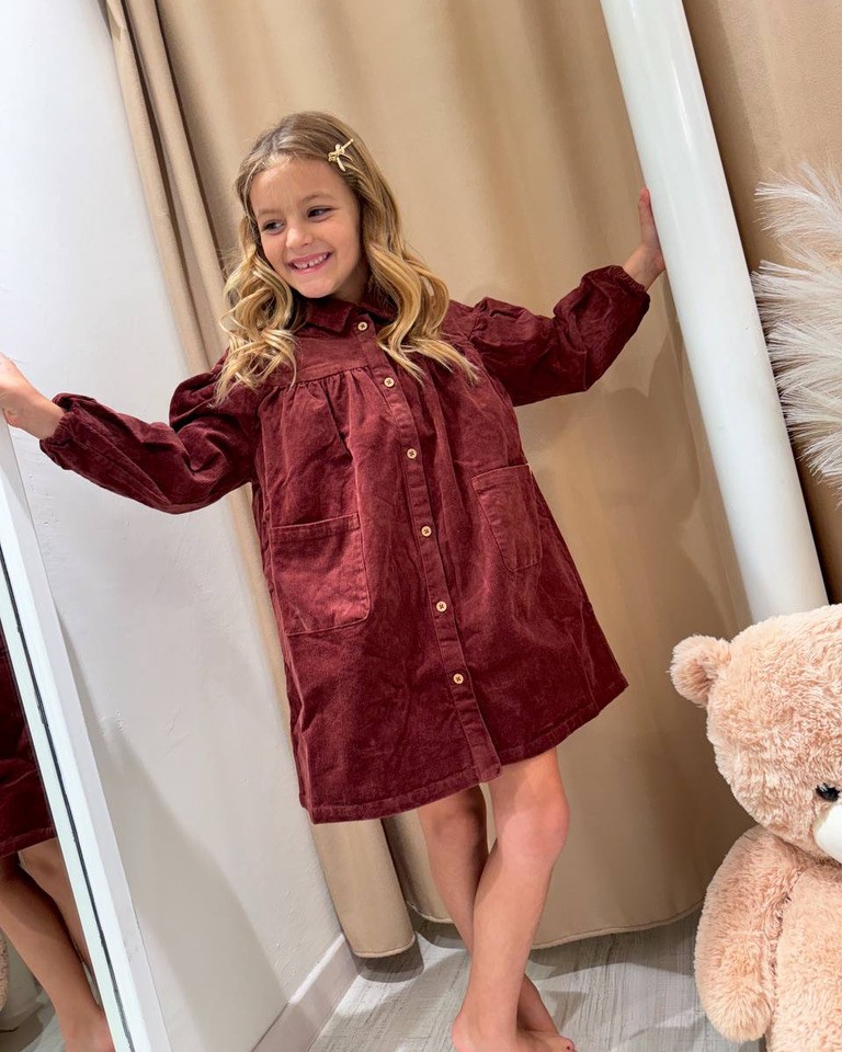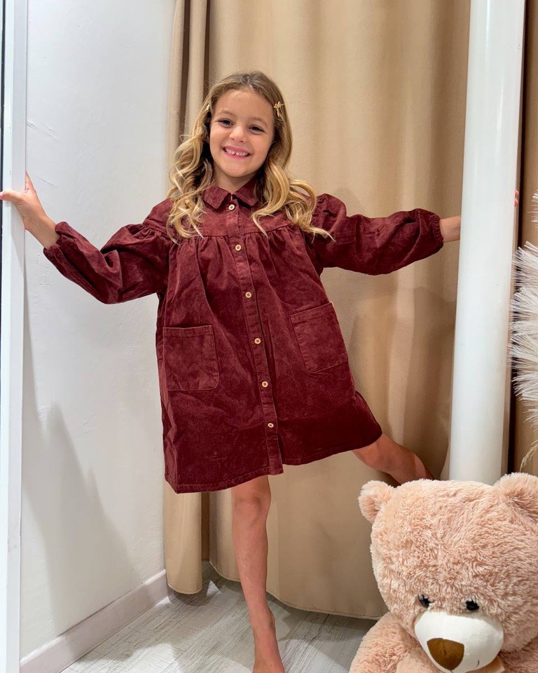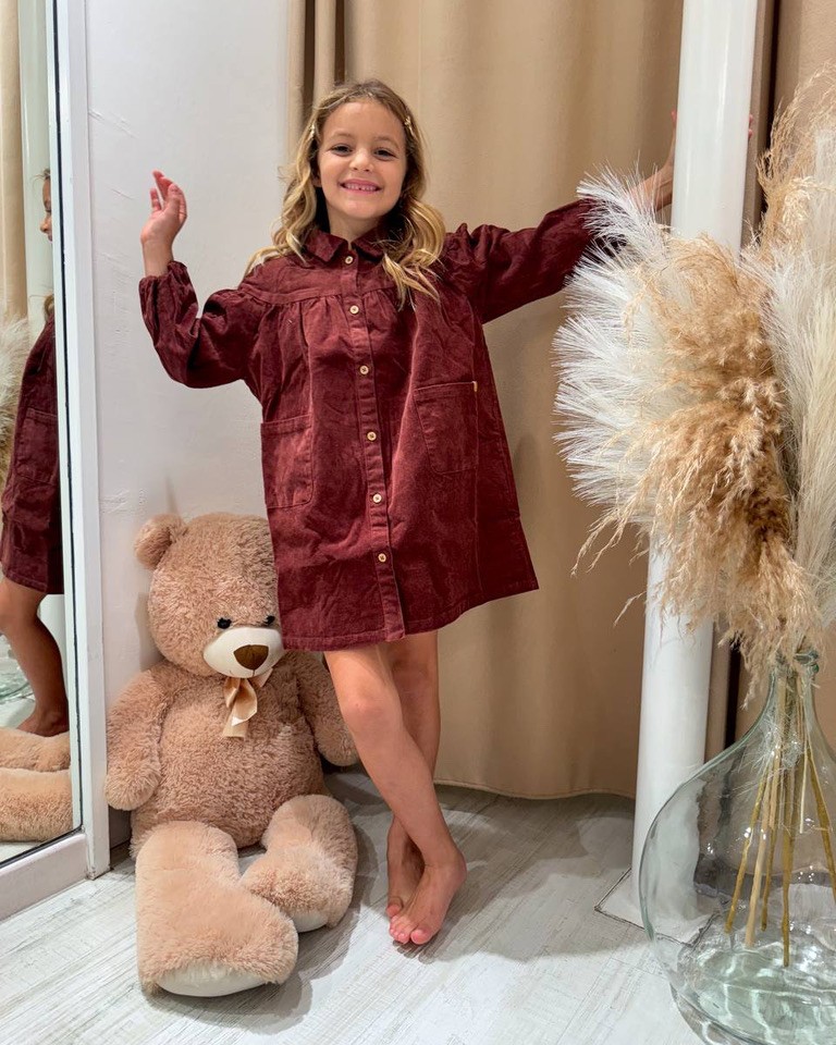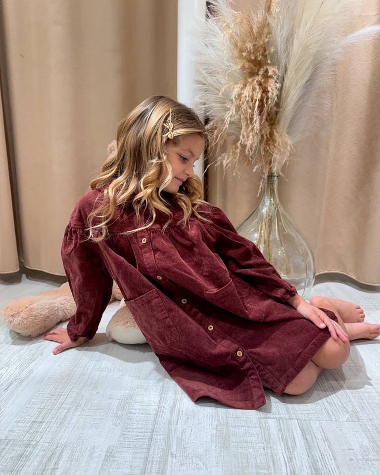 Vestito camicia in velluto bordeaux Lil’ Atelier