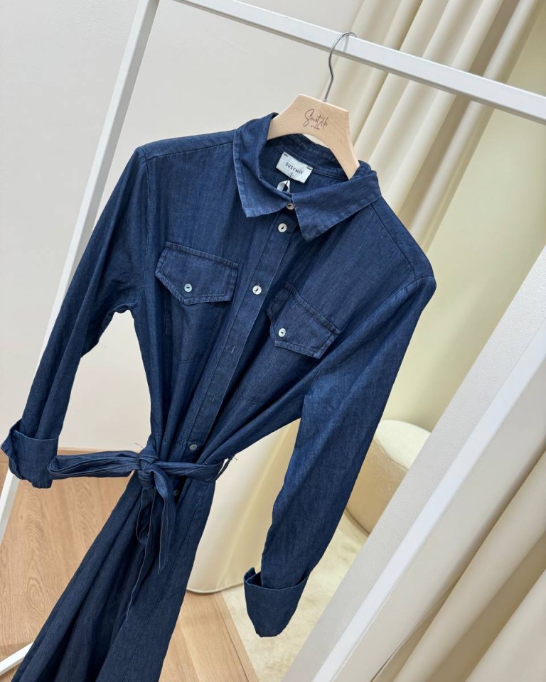 Vestito chemisier lungo blu Susy Mix