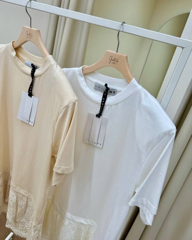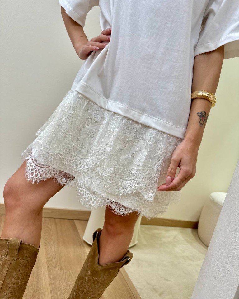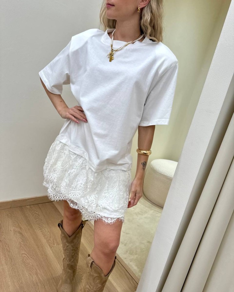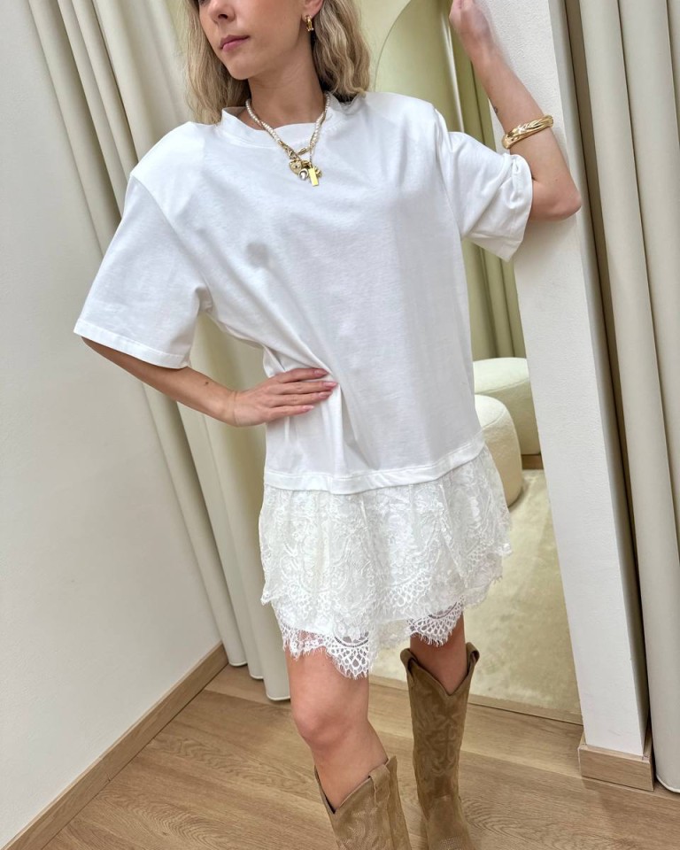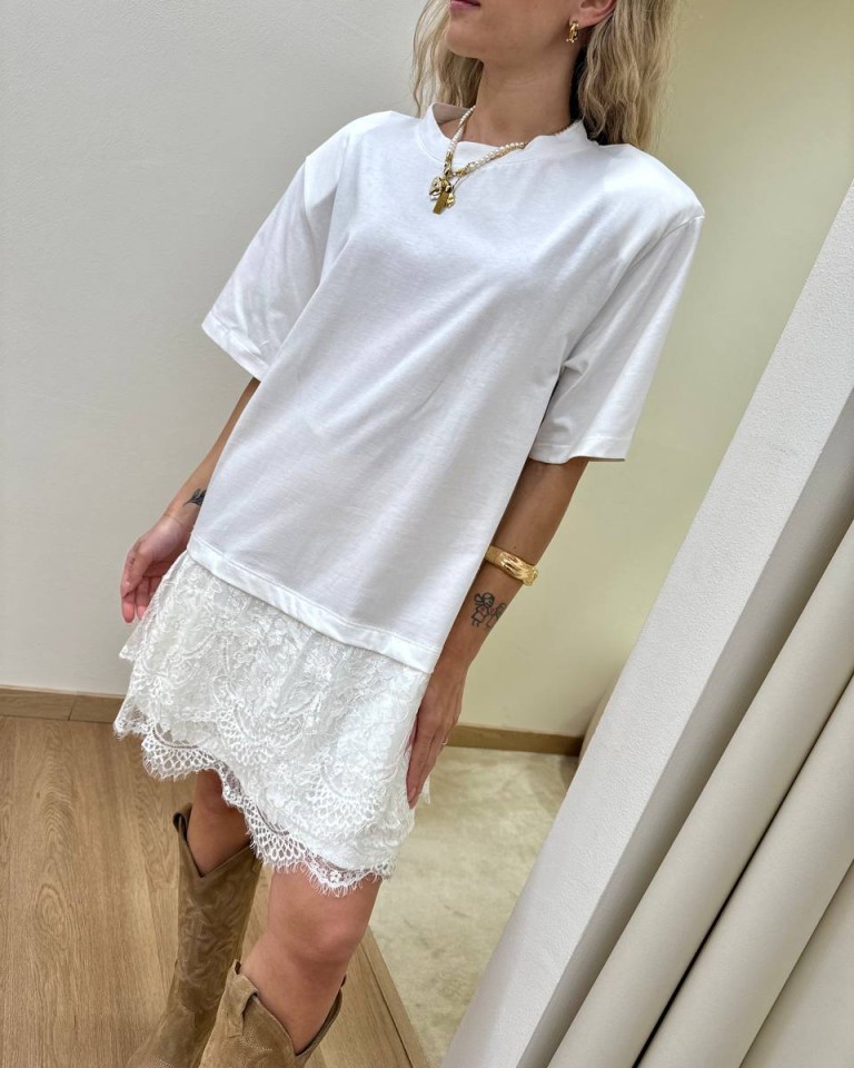 Vestito corto t-shirt con pizzo bianco HaveOne