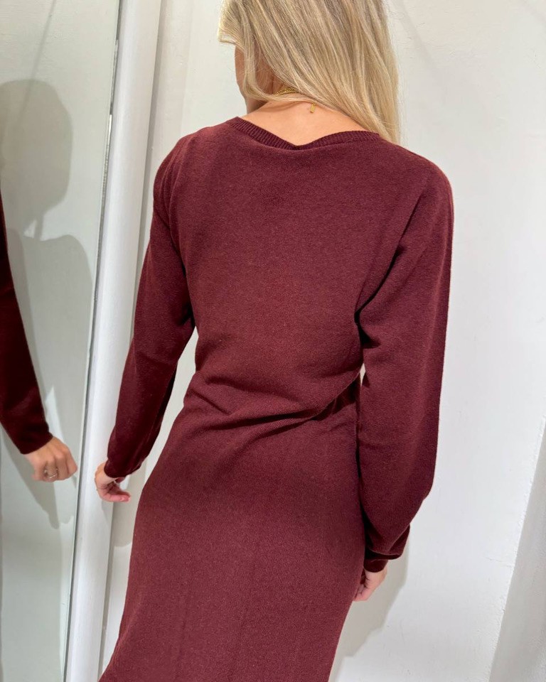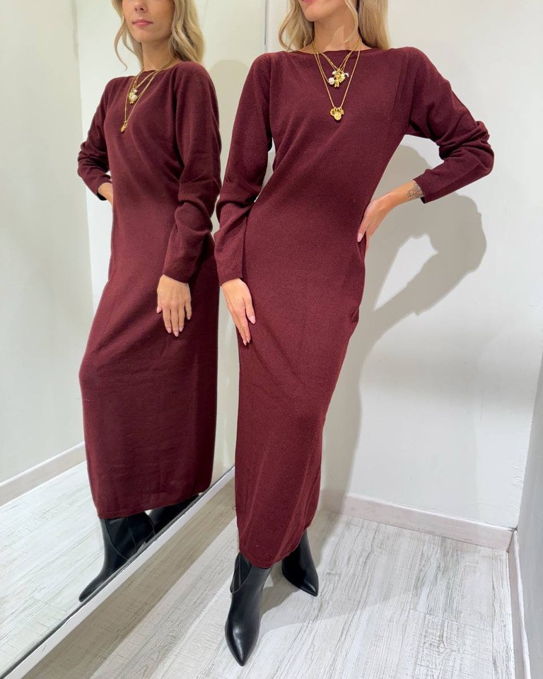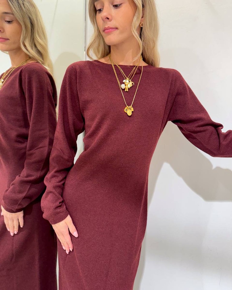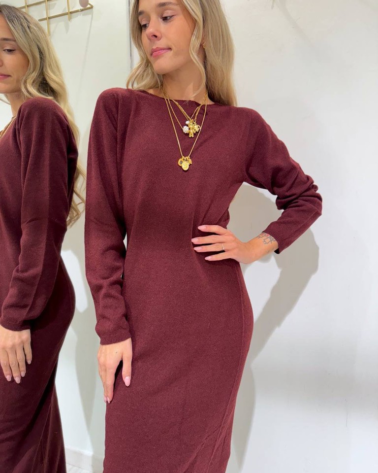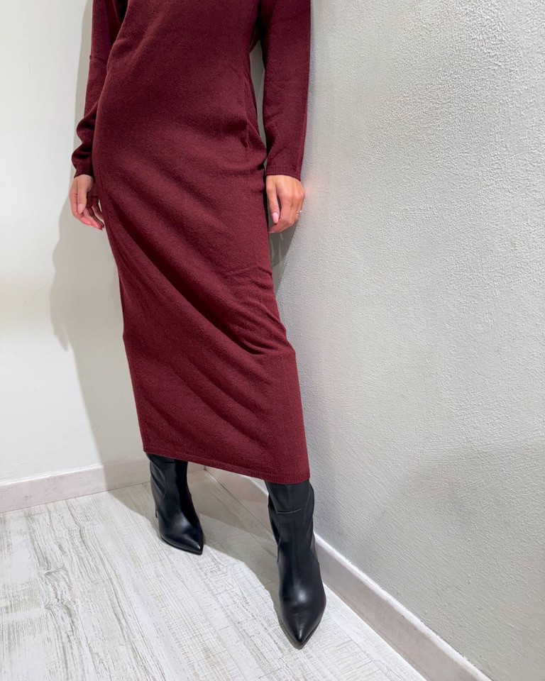 Vestito girocollo bordeaux in maglia lungo Kontatto