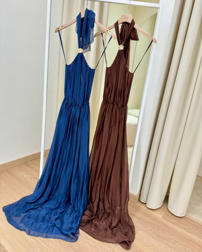 Vestito lungo dettaglio gioiello cioccolato HaveOne