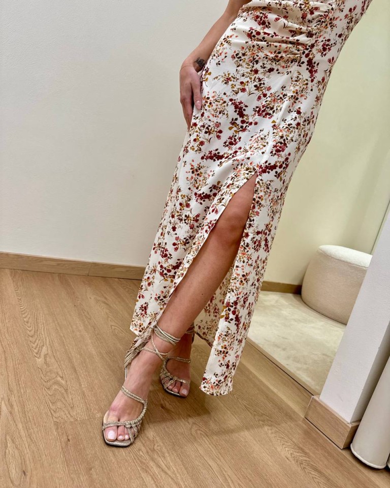 Vestito midi floreale burro con drappeggio Vicolo