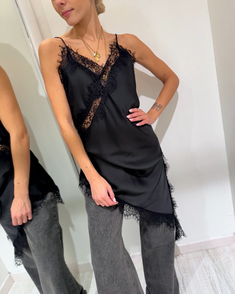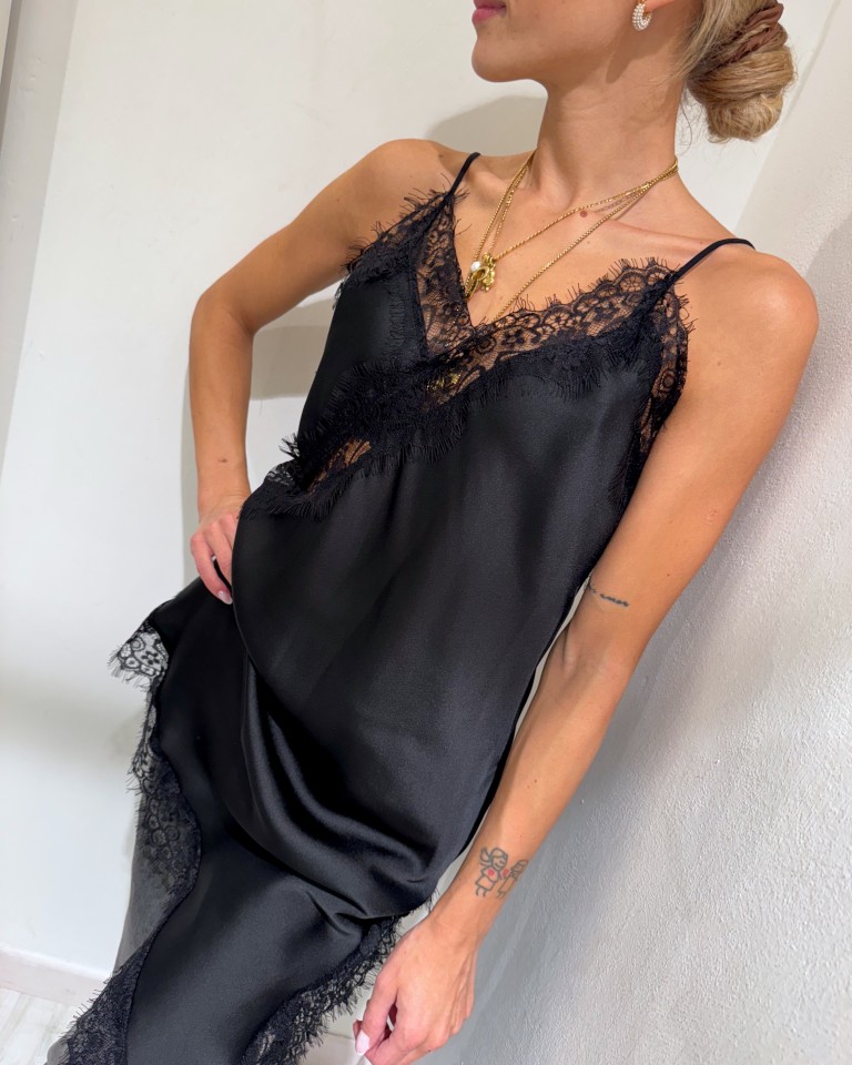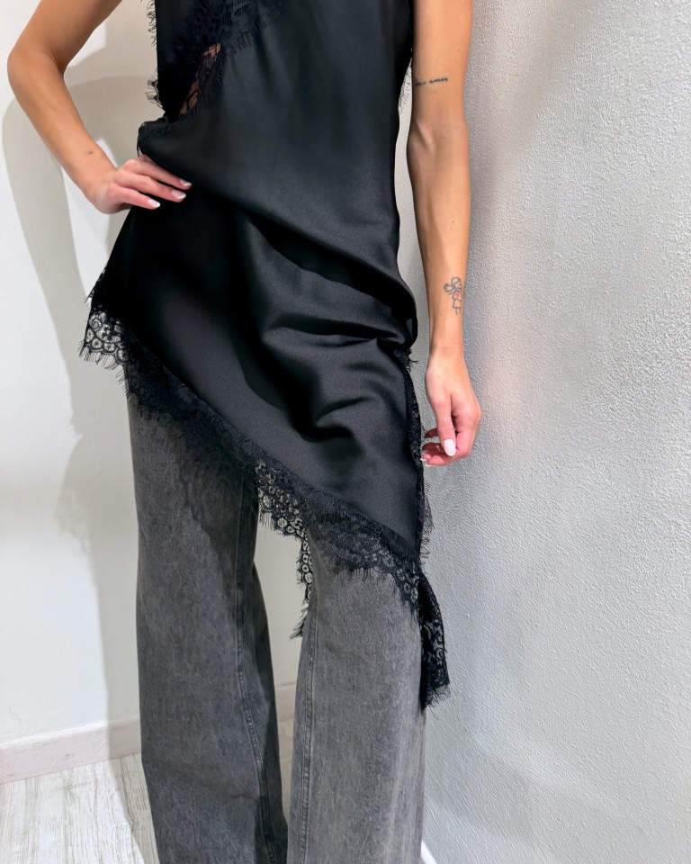 Vestito satin asimmetrico olio con pizzo HaveOne